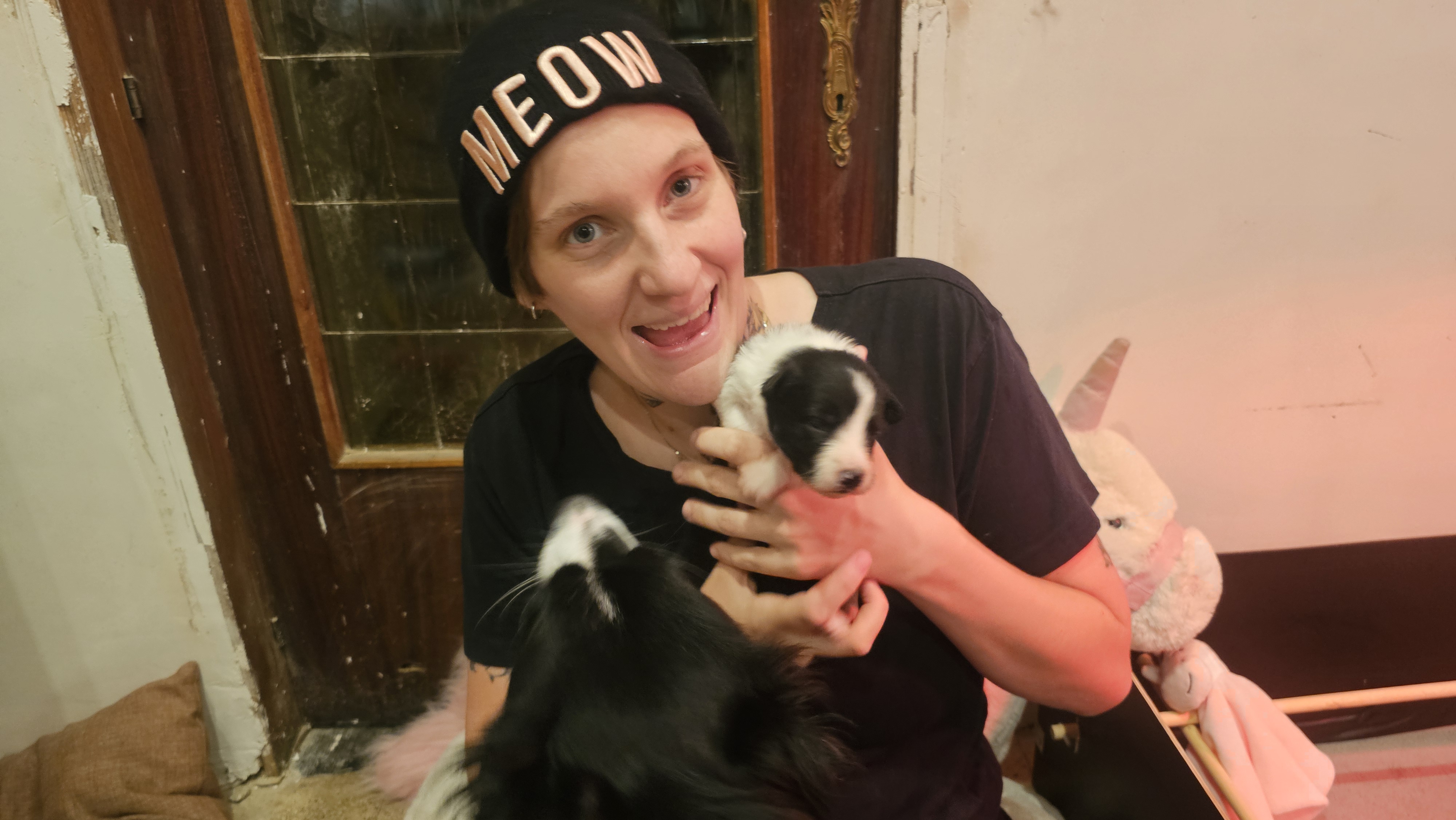 After a little more than an hour, the vet brought Kaïa back to us. She was so happy to be reunited with her puppies. sadly, the last puppy was weak, he’s not eating and struggled to move.
