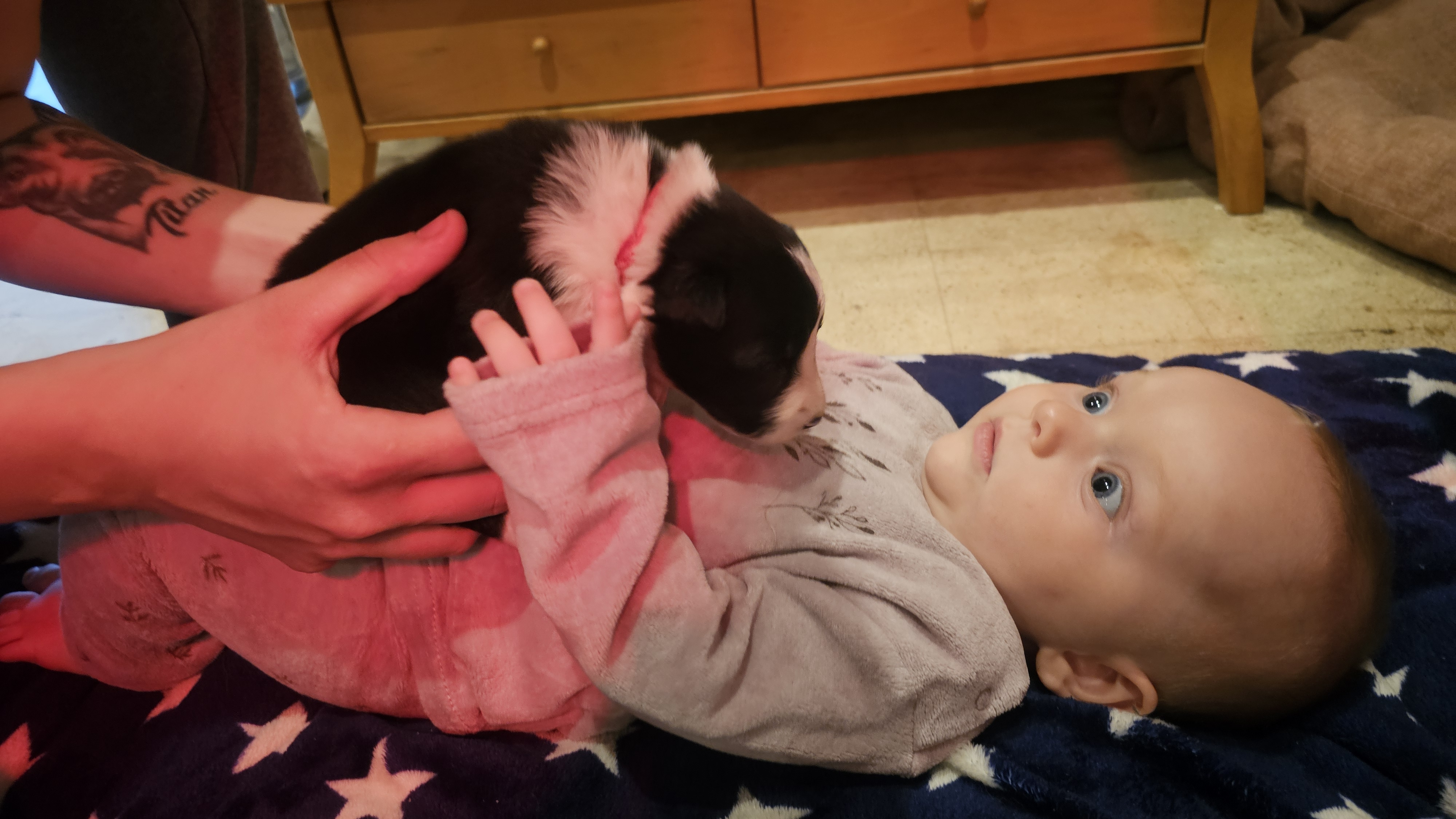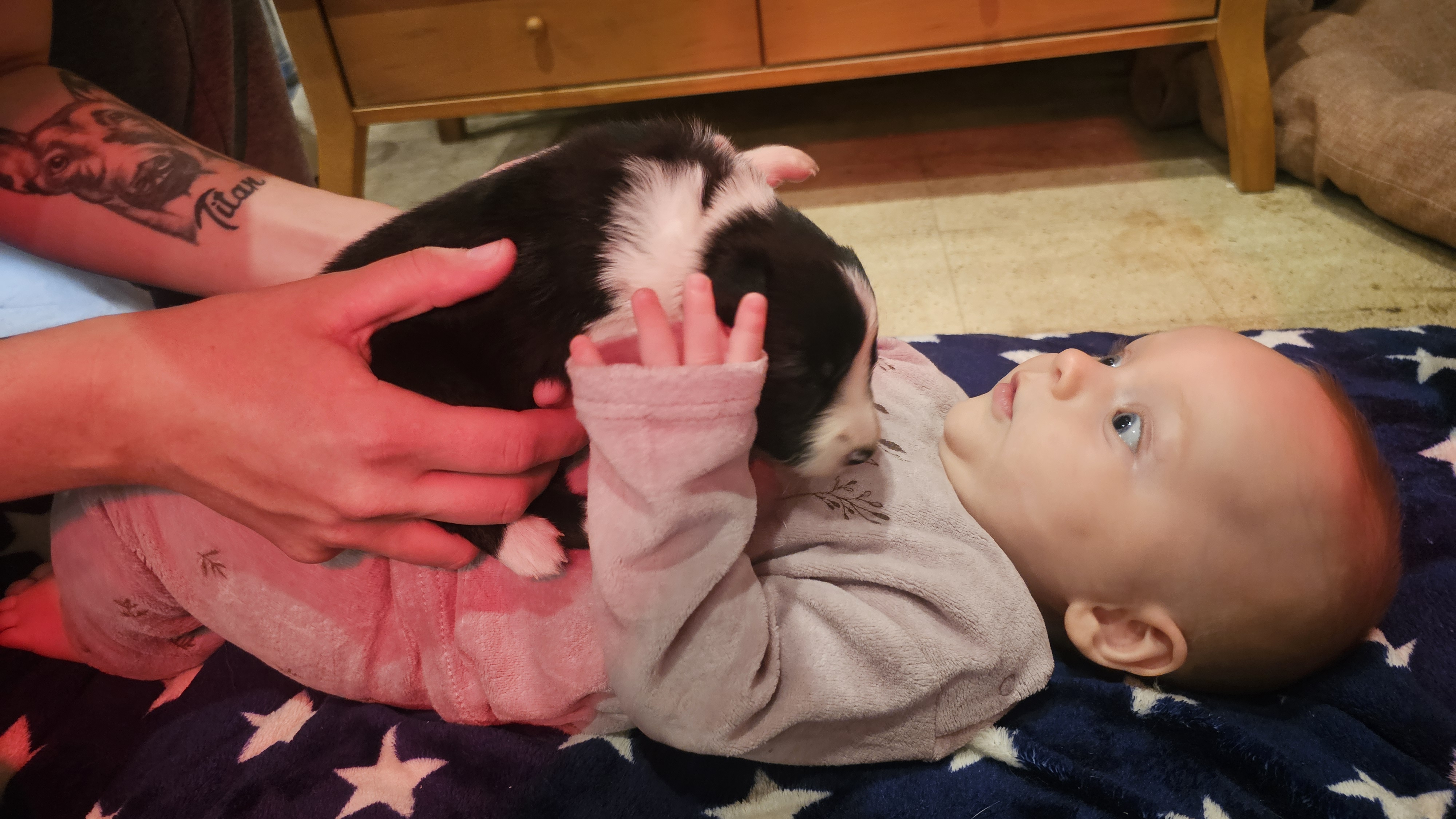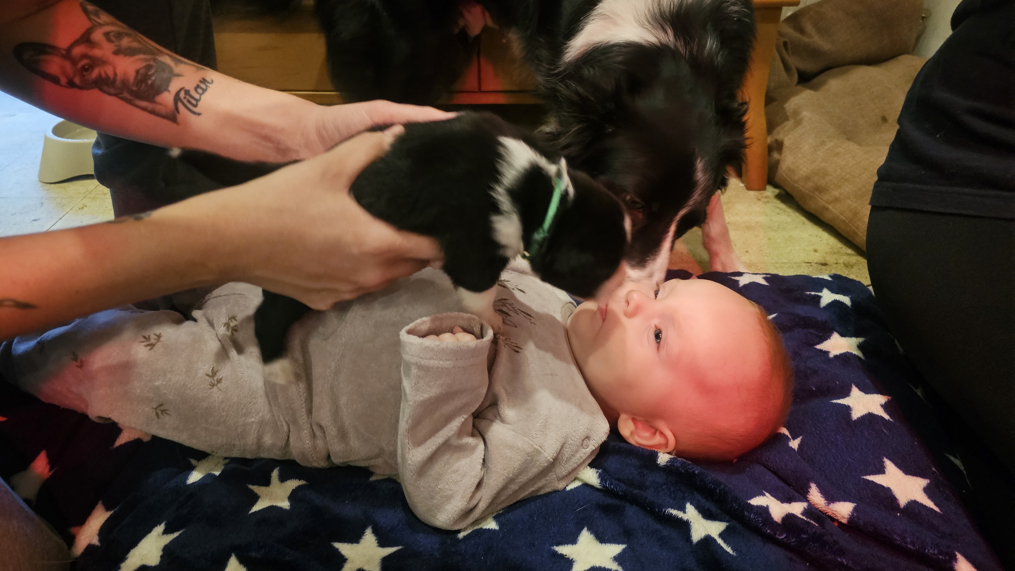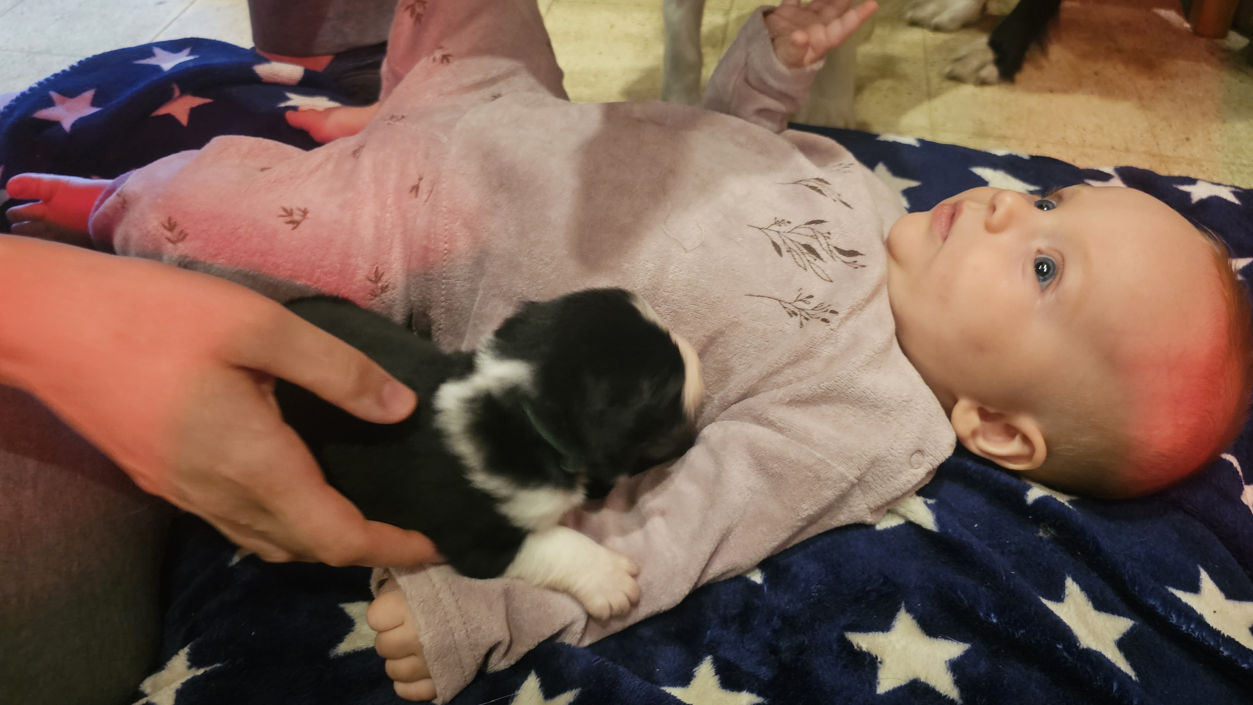In the night between the 23rd and the 24th of August, the 4 puppies from Kaïa and Maïky were born. 3 females and one male at first. The work started around 23:50.